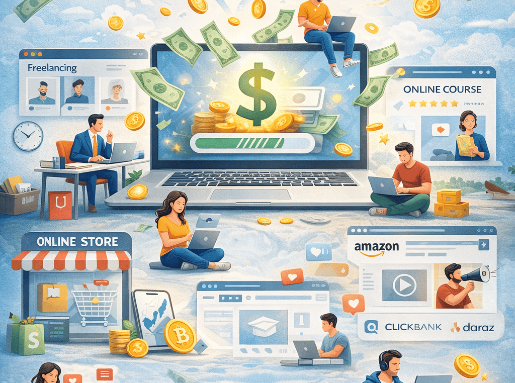 Of course the internet brings along lots of possibilities to make extra cash or to turn it into a full-time career. Everybody from whatever corner of the earth could try to improve their income earnings using this pathway. Freelancing is among some of the most popular and most credible sources of income through the internet. Companies which connect individuals to clients all over the world-thus enabling one to work from home on projects without leaving homes-include Upwork, Fiverr, Freelancer, and PeoplePerHour. These online job sites allow an individual to offer his or her skills such as writing, graphic design, web development, video editing, digital marketing, data entry, translation, and virtual assistance, with each freelancing job. Other than receiving payment for the services from clients, such virtual assistants provide customers with online content generation as an additional revenue stream for emerging income powerhouses. Monetized revenues through the views from his Youtube videos, TikTok videos, Instagram reels, Facebook pages, or blogs run into actual dollars when the person keeps providing consistent, attractive input. Blogging and niche websites, for instance, earn money from unique long-term passive income through Google AdSense, affiliate marketing, sponsored posts, and digital product sales, while requiring patience, SEO knowledge, and consistent efforts before profits begin to appear. Affiliate marketing is the other huge method of earning income online, which can involve promoting products or services from companies such as Amazon, Daraz, ClickBank, or other software brands. Affiliate marketers can sell products news by using websites, YouTube reviews, emails, or social media advertising to drive traffic, as they earn commissions with each sale made through their referral links. Those who wish to impart their knowledge can very well benefit from teaching or tutoring online since these people can easily teach languages, academic subjects, coding, graphic design, or personal development through such platforms as Udemy, Skillshare, Coursera, or even using Zoom and WhatsApp, which earn an income while disseminating knowledge. Those in the business-minded share e-commerce and dropshipping as one of the best examples in this area. The notion of selling online products-acquired physical or digital-using platforms like Shopify, WooCommerce, Daraz, or Etsy brings opportunities to manage inventory by themselves or even simply rely on suppliers who directly ship products to customers. Through this platform, creators instantly capture the ideas and will get actualized physical products like customized T-shirts, mugs, phone cases, and such other merchandise sold without upfront inventory costs and earn money as the orders get fulfilled through third-party services. Remote jobs have also created a more stable option for many people today, as several companies hire employees online in jobs related to customer support, project management, software development, sales, and marketing, providing fixed salaries while allowing them to work at home. Microtask gig sites are best for microtasks and gig jobs like Amazon Mechanical Turk or data annotation platforms, generating small but quick income possibilities for completing simple tasks. Online investing has also become a very common means of making income, with many really being able to earn money via stock trading, investment in stock shares and bonds, cryptos, forex, mutual funds, and other means using online platforms. Of course, advanced education, risk management, and patience are needed in adopting these means, lest an individual suffer losses. But there are also people who earn income by making and selling digital products such as e-books, online courses, templates, stock photos, music, or even mobile applications. The preestablished products now have the potential to create passive income streams with low efforts, thus drastically reducing the required work after one's initial hard work. Online surveys, app testing, and reward-based platforms will earn very little, perhaps just for beginners, but care should be taken with scams^particularly with these schemes for earning online. To put it in a nutshell, earning money online normally implies flexibility and independence, but it also takes enormous discipline and time management, continuous learning, and awareness of fraudulent schemes that promise quick earning from little to no effort. Andre and Rema assure most people that "success in online earning is not always instant but can involve building skills, credibility, and an audience over time." Adopting a serious approach to online earning-setting goals, improving skills, remaining consistent, and following market trends-makes it more likely for a person to achieve validated income over time. After all, the internet has enough of these "countless legitimate ways" to earn money online-from the experienced hustler to the complete novice one. The right mindset, dedication, and ethical standards accompany all those ways so that anyone can make an online opportunity into something meaningful and potentially life-changing income source.